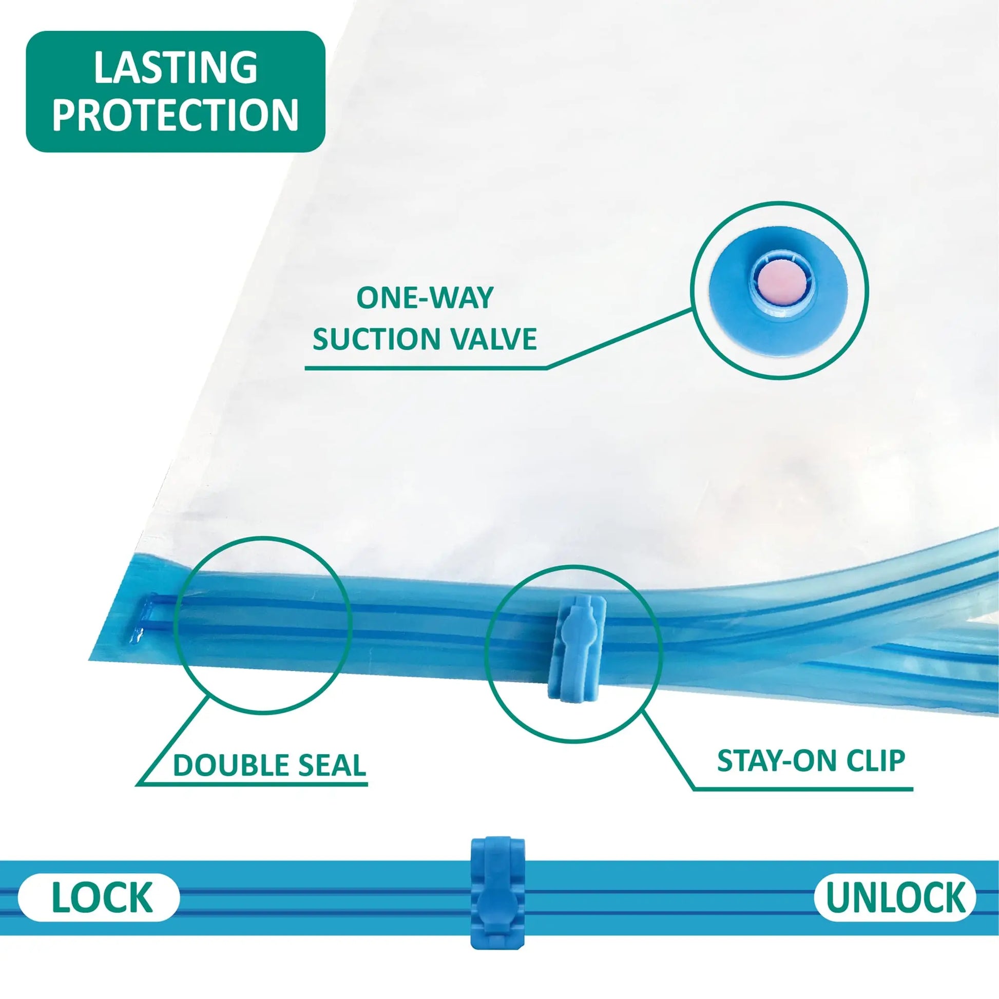Maximize storage with this 5-pack of vacuum compression bags—perfect for storing comforters, blankets, seasonal clothes, or packing for travel. Durable, airtight, and easy to use with any vacuum or hand pump, these bags protect items from dust, moisture, and odors.