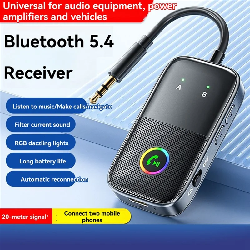 A99E-RGB Bluetooth 5.4 Audio Adapter – 3.5mm AUX Receiver & Transmitter