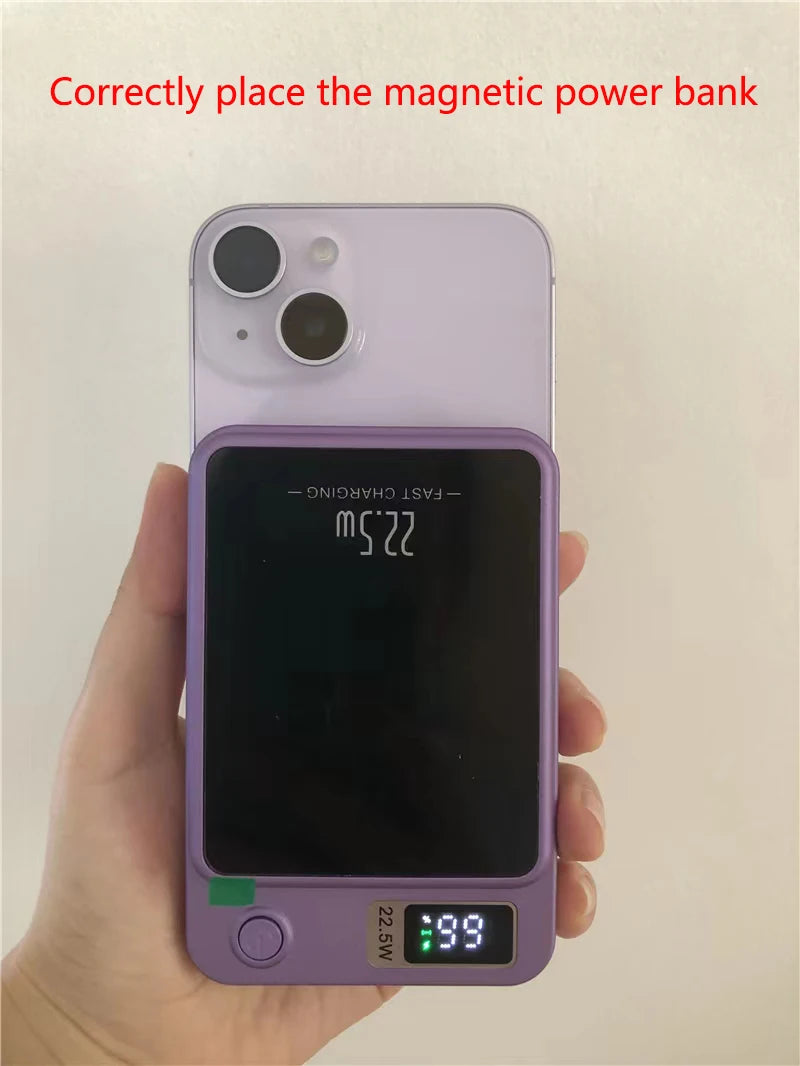 Stay fully charged on the go with this 50000mAh magnetic wireless power bank. Featuring 22.5W fast charging and 20W PD output, it’s perfect for powering iPhone 12–15, Samsung, Huawei, and more. Supports both wired and wireless charging with strong magnetic alignment for MagSafe devices.
